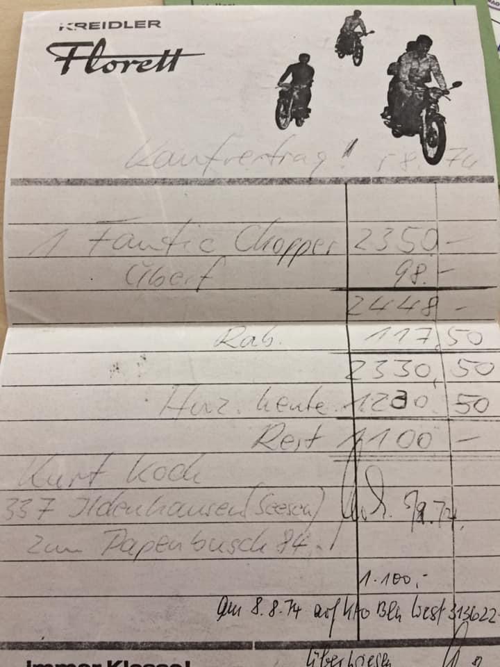 das schöne an einem originalen Moped aus 1. Hand sind ja auch die ganzen Details wie Kaufvertrag, Betriebsanleitung, Einfahraufkleber und Matching Numbers :)