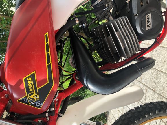 Bei den Original Aspes MCS mit dem Kühler vorm Lenkkopf kommt der Schlauch auch direkt über dem Kotflügel