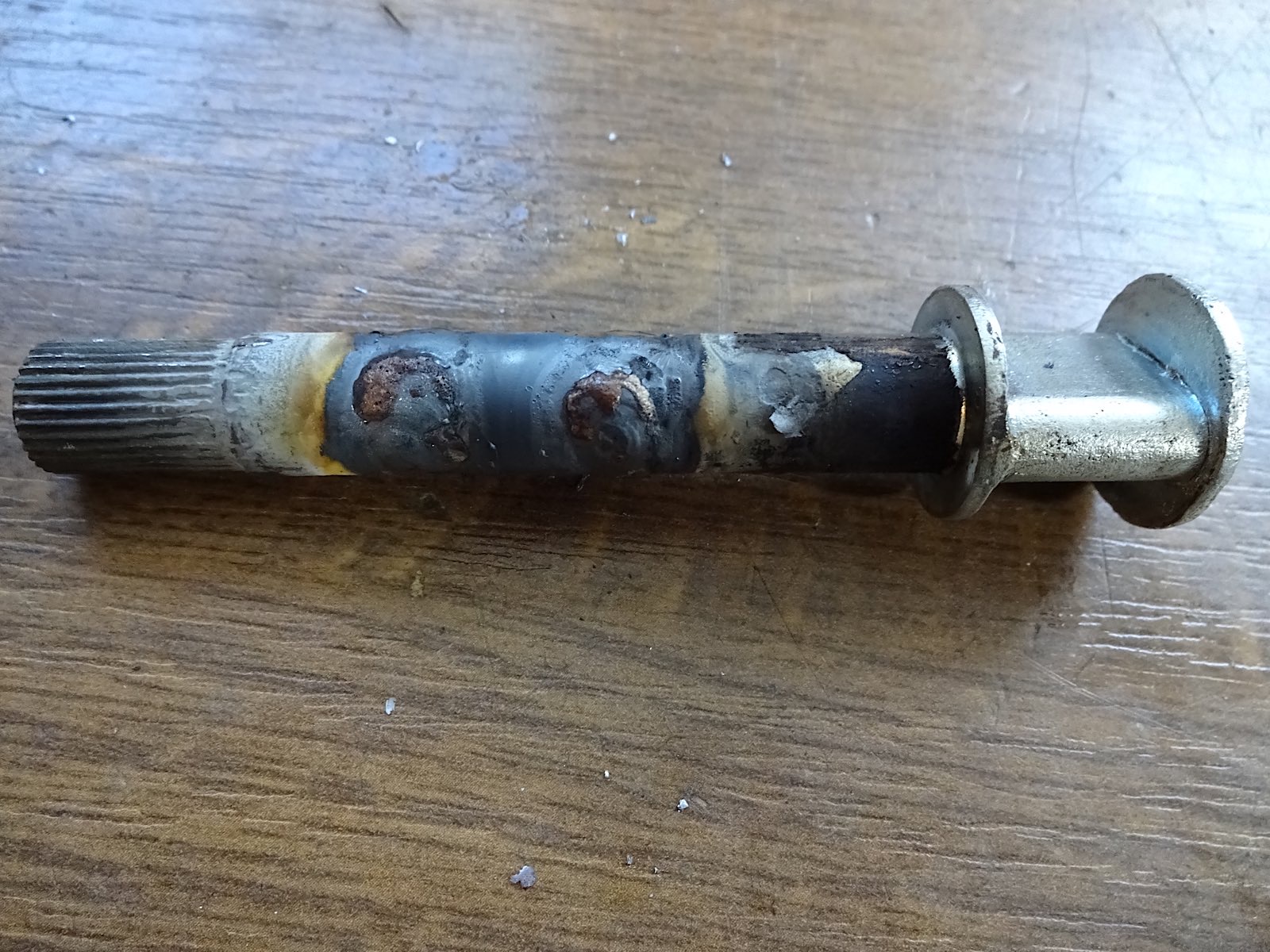 Die miese Schwerkraft und die Hitze beim Schweissen vertragen sich nicht, trotz Zentrierstab.
