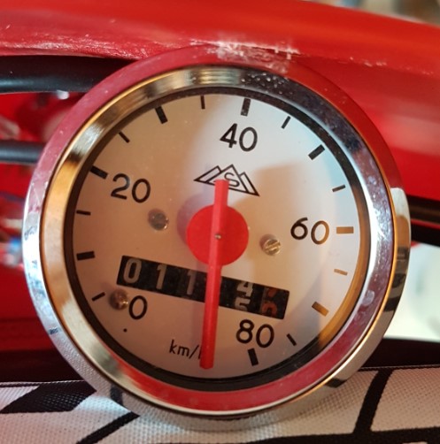 Klar geht das nicht ganz spurlos an dem Tacho vorbei. Leichte Dellen im Chrom passen aber ganz gut zum Charakter eurer Gelände-Mopeds.
