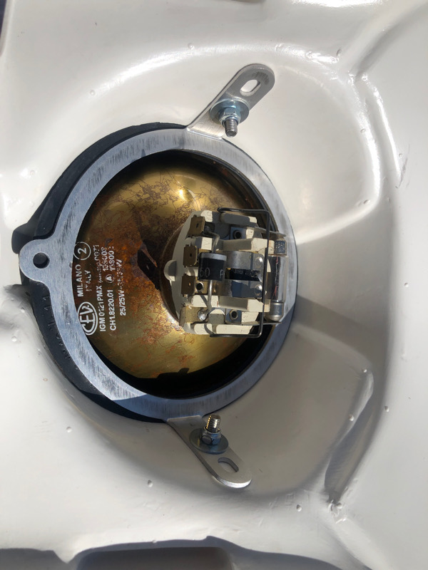 Ausgangsbasis waren eine Lichtmaske von Termoforma aus dem Elsass. Ich habe einen Scheinwerfer bei denen bestellt mit 105 mm Durchmesser. Einen passenden Haltering gibt es dazu, kostet 25€.