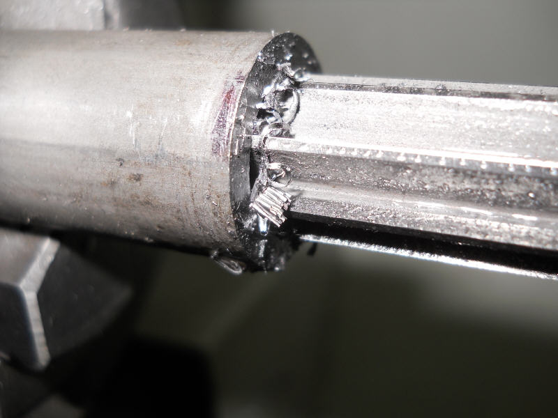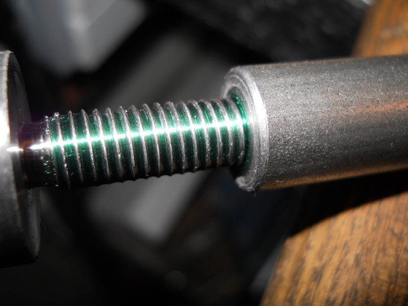 Darum wurde die Schraube mit Loctite verklebt, dann alles zusammen durchbohrt und mit einem Stahlstift blockiert.