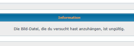 Das liegt meist daran, das ihr eine viel zu große Datei hochladen wolltet. Damit Leute mit Smartphone auch noch was erkennen können und mir der Server nicht platzt, habe ich die maximale Größe auf 1600 x 1200 Pixel begrenzt. Ist eure Datei größer, müsst ihr die in einem geeigneten Programm halt entsprechend verkleinern