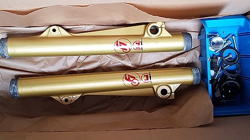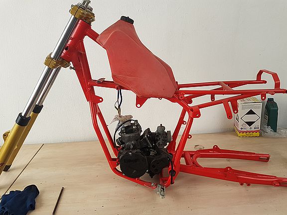 So, nicht zu viel passiert in den letzten Wochen. Die Karre ist komplett zerlegt. Dämpfer nach Italien zum Überholen, Tauchrohr zum schweißen geschickt. Rahmen ist gestralht und die Kotflügel zu meinem polnischen PE-Schweiß Artisten...aber die sind schon ziemlich hinüber. Für eine Enduro habe ich noch neue im Keller, aber für den Crosser.....Habe schon mal neue Dichtungen und Simmerringe für den Motor besorgt. Nen NOS Yamaha YZ Kupplungszug auch. Mein Sattler hat leider kurz nach Einlieferung der Sitzbank den Laden schließen müssen....Räder sind auch zerlegt und nun wartet ein karton mit Kleinteilen dass ich ihn zum galvanisieren schaffe. Demnächst auch wieder Bilder. Wäre so gerne nach Novegro an diesem Wochenende, statt dessen in der nächsten Woche wieder Asien. Als ob es da HRD Teile gäbe.
