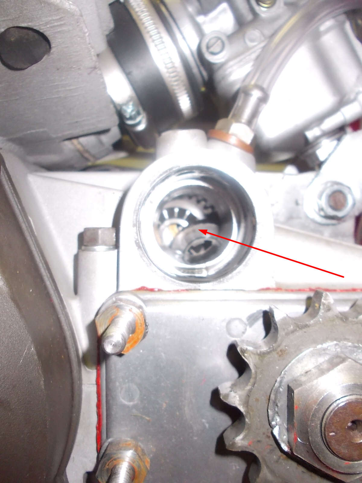 Nur ist M8 aber wieder so groß, dass da die Schraube an die Wellenverzahnung stößt. Nur dafür gibt es aber ja eine abgeschliffene Stelle auf der Kickstarterwelle, nur steht die an der falschen Position um 90° versetzt. Jetzt kommt man ja beim Mac Minarelli prima von außen an die Kickstarterfedervorpannung etc dran. Aber irgendwie musste ja die Welle um 90° versetzt sein. Beim hin und her probieren, hatte ich plötzlich die ganze Welle in der Hand und es gab ein "Klong" Geräusch im Motor