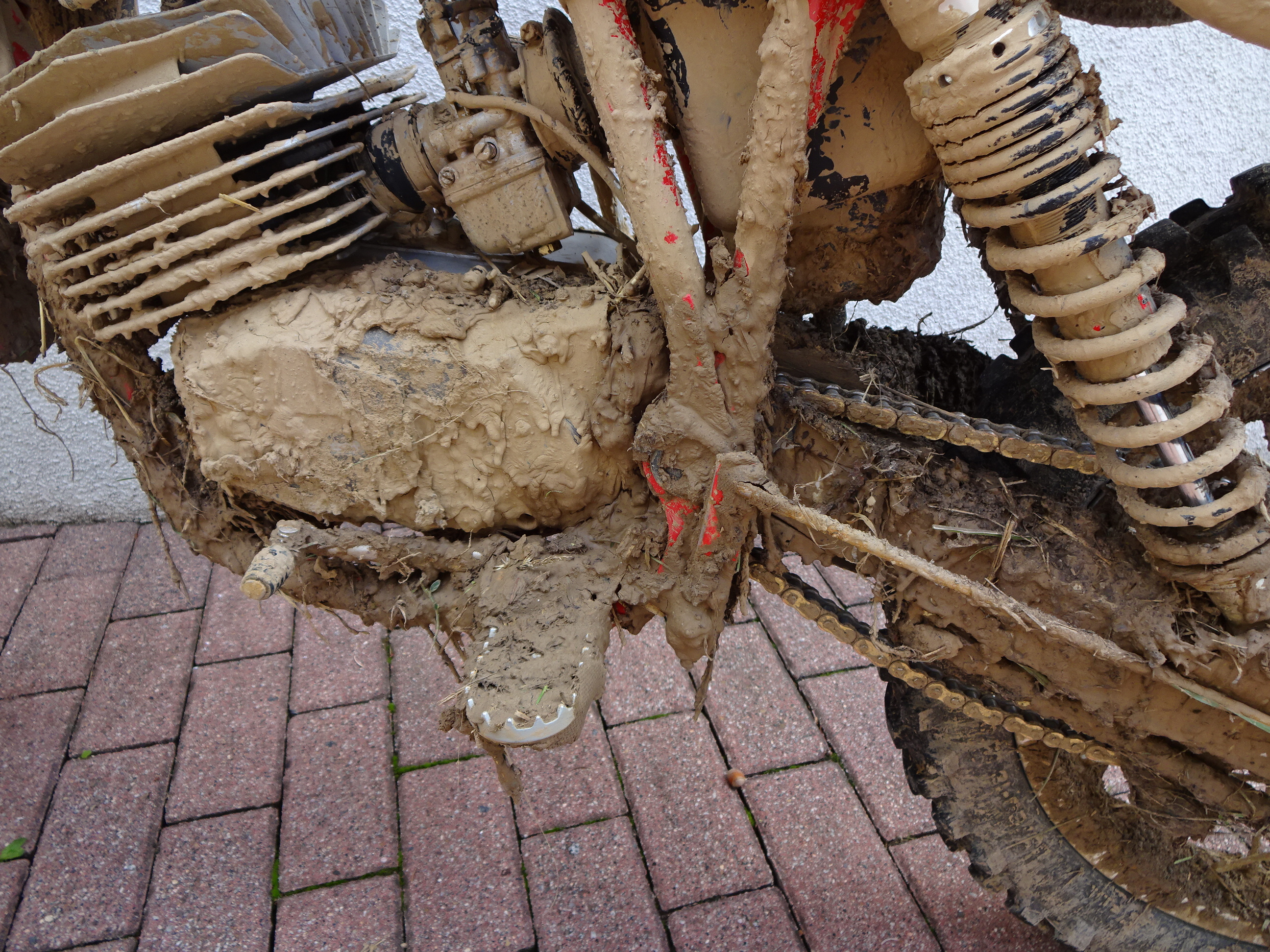 Aber aufgeben war nicht, dachte ja erste an Zündkerze, also die unterwegs gewechselt, keine Veränderung. Im Fahrerlager beim Tanken schnell die Schwimmerkammer abgemacht und Hauptdüse mal raus. Aber keine Verschutzungen oder Wasser waren zu sehen. Egal dann eben mit 8 PS alles nochmal gefahren. Enduro soll ja aus dem Spanischen kommen und sich etwa mit hartmachen, ertragen, erdulden übersetzen