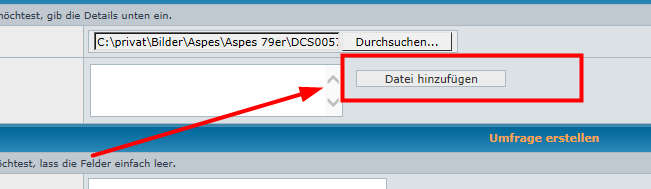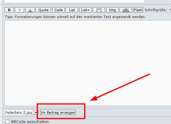 Wenn ihr einen Beitrag schreibt, habt ihr genau unter dem "Absenden" Button die Möglichkeit eine Datei auf eurem Rechner zu suchen