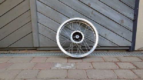 die hintere Felge hat jetzt neue Speichen und ist gerade weg zum zentrieren: