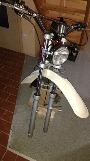 Also hab ich mich durchgerungen via Aliexpress eine laut Beschreibung genau passende Gabel (also die zwei Holme, ohne Brücken) zu ordern. Passt genau. 30mm, Länge passt, 12mm Achse, Trommelbremse, die Halterung musste ich nur leicht schmälern.