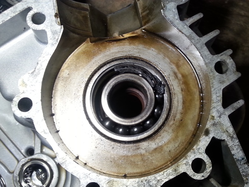 Die KW drehte sich im rechten Lager leicht. Das würde den Siri als Übeltäter bestätigen. Dann noch die andere Seite kontrolliert. Und siehe da, der Polyamidkäfig war ebenfalls angerieben oder angeschmolzen und ließ sich von Hand entnehmen.
