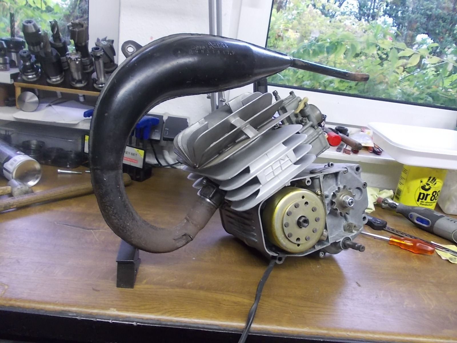 Irgendwie die letzte Zeit gar nicht in die Werkstatt gekommen. Mehr mit dem Strassenmoped und MtB unterwegs gewesen. Jetzt wo ich Urlaub habe und es regnet, wird losgelegt.
