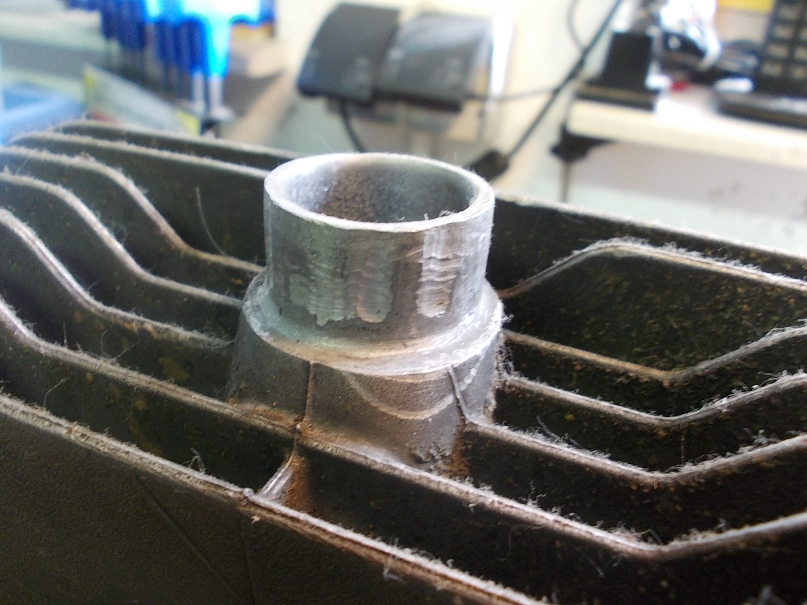 Der Zylinder hat keine schöne Lauffläche mehr und der Anschluß für der Vergaser muss auch noch bearbeitet werde.