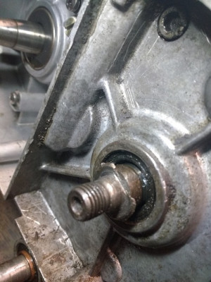 Ich hab sehr lange gebraucht, um den Motorblock auseinander zu bekommen. Die KW Lager sind auf der KW hängen geblieben, da sind sie jetzt noch. Der nächste Mist war, das Moped wäre keinen Meter gefahren. Das Ritzel war zwar draufgeschraubt, aber die Aufnahme ist so was von rund, da hält nix mehr. Musste erst einen massiven Grat an der Aufnahme wegpopeln bevor die Welle rausging. Aber alles nicht schlimm, hab ja noch Ersatz.