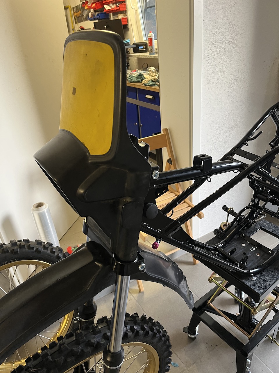 Felgen entspeicht, Gabeln zerlegt, alle Teile dann zum Entlacken/Strahlen und zum Pulverer meines Nichtvertrauens gebracht, überwiegend mehr als bescheiden geworden, also nochmals fast alles von vorne, diesmal beim Pulverer meines Vertrauens. Nun alles perfekt, natürlich zeitverzögert und unnötiges Lehrgeld bezahlt!!! Keine Ahnung warum ich einen solchen Schwachsinn gemacht habe…
