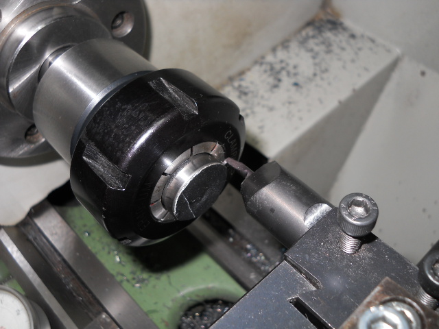 Also ran an die neuen Lager, welche ich aber erst mal gegen Späne abdichten musste. Dann die Spannzangenhalterung anstatt des Backenfutters auf die Drehbank und das Lager zentriert und gespannt.
