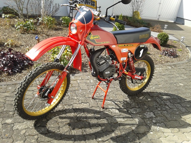 - Selber zugeschnittene Starnummerntafel aus extra dicker Spezialfolie mit Startnummern und selber gemachten ASPES Aufklebern