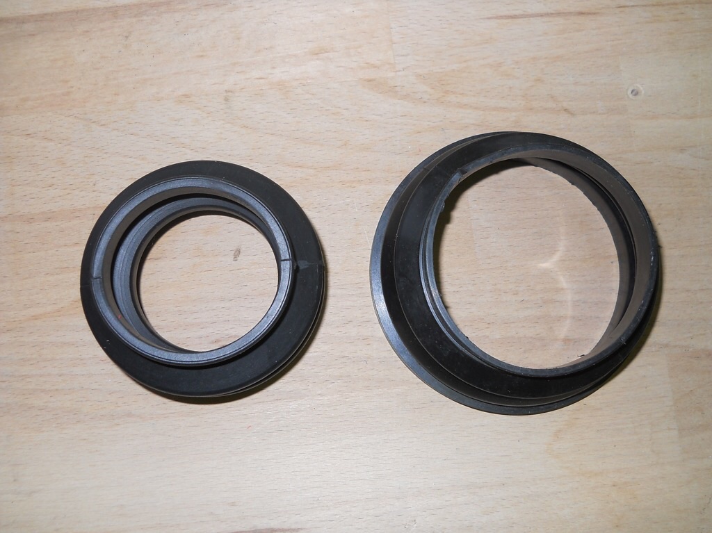 Der Gummi ist hier links zu sehen, rechts der welcher über die Aspes Homepage zu bestellen ist. Der rechte ist viel weicher und in der Gesamtlänge so, das er ohne Spannung auf einen 14er oder 19er Vergaser mit dem originalen Luftfilter Aluanschluß passt. Der linken Gummi, rutschte mir trotz Schellen relativ schnell wieder ab.