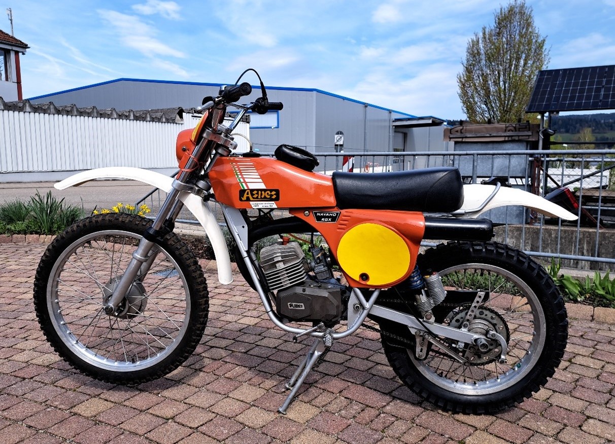 Grundsätzlich kannte ich kein Modell mit der Bezeichnung Navaho RGX. Möglicherweise wurde in Italien die RCR als RGX vermarktet? Laut Papieren soll die Erstzulassung bereits 1976 gewesen sein. Aber die 76er Navaho hatte noch keinen Radialzylinder und auch noch nicht die Seitenteile. Der Rahmen spricht auch von 1978. Auf dem Motorengehäuse steht ASPES P6 CS.S