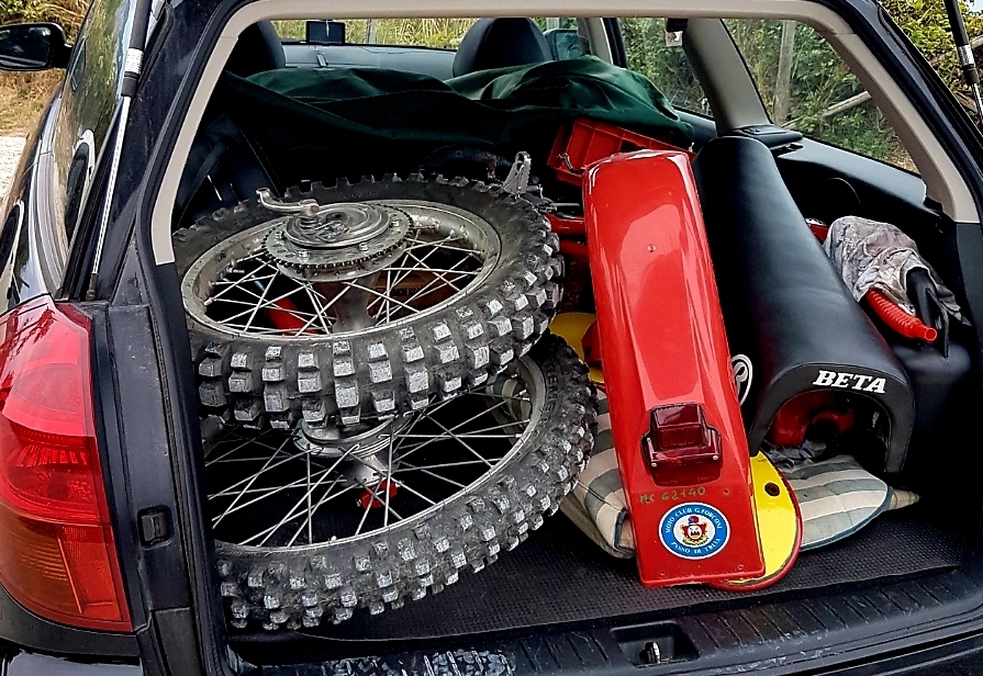 Also mit meiner Frau kann ich Pferde stehlen. Geld ist auch nicht das Problem. Aber sie hat halt damals motorsportmäßig einiges mit mit mitmachen müssen. Wenn´s mich wieder mal zerlegt hatte war Sie es, die den großen 508er MB Renntrannsporter nachhause schippern durfte. Sie war dann ganz froh, als das Kapitel abgeschlossen war. Jetzt komm ich wieder mit Mopeds um die Ecke. Die erste war ja quasi mein Jugend-Moped. Gestohlen, wieder gefunden und restauriert.