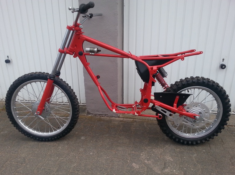 Was hast Du für ein Hinterrad? Sieht mit nach einer 1.85"-Felge aus. Original fährt die BETA hinten auf einer 1.60"-Felge mit 3.00"-Reifen. Die Felge wäre für Reifen bis 3.50" schon noch gegangen. Was ist das für ein Reifen? Sieht für den Geländeeinsatz gut aus. Dann brauchst Du aber mehr als nur den 12er Vergaser! :D