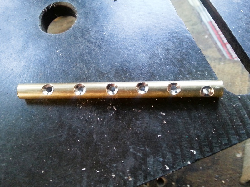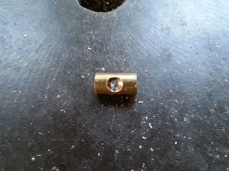 Dann habe ich mich um den vorderen Bremszug gekümmert. Der Bremshebel an der Trommel hat eine Gabel für einen 6mm Nippel. Dafür habe ich bislang keine passenden Züge gefunden. Also habe ich aus einer 6mm Messingstange Nippel hergestellt. Loch rein, ansenken, ablängen, fertig.