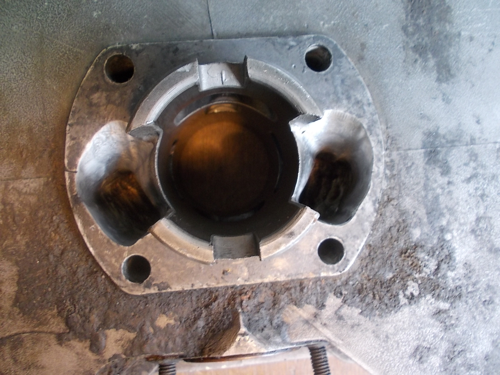 Der Zylinder hat keine schöne Lauffläche mehr und der Anschluß für der Vergaser muss auch noch bearbeitet werde.