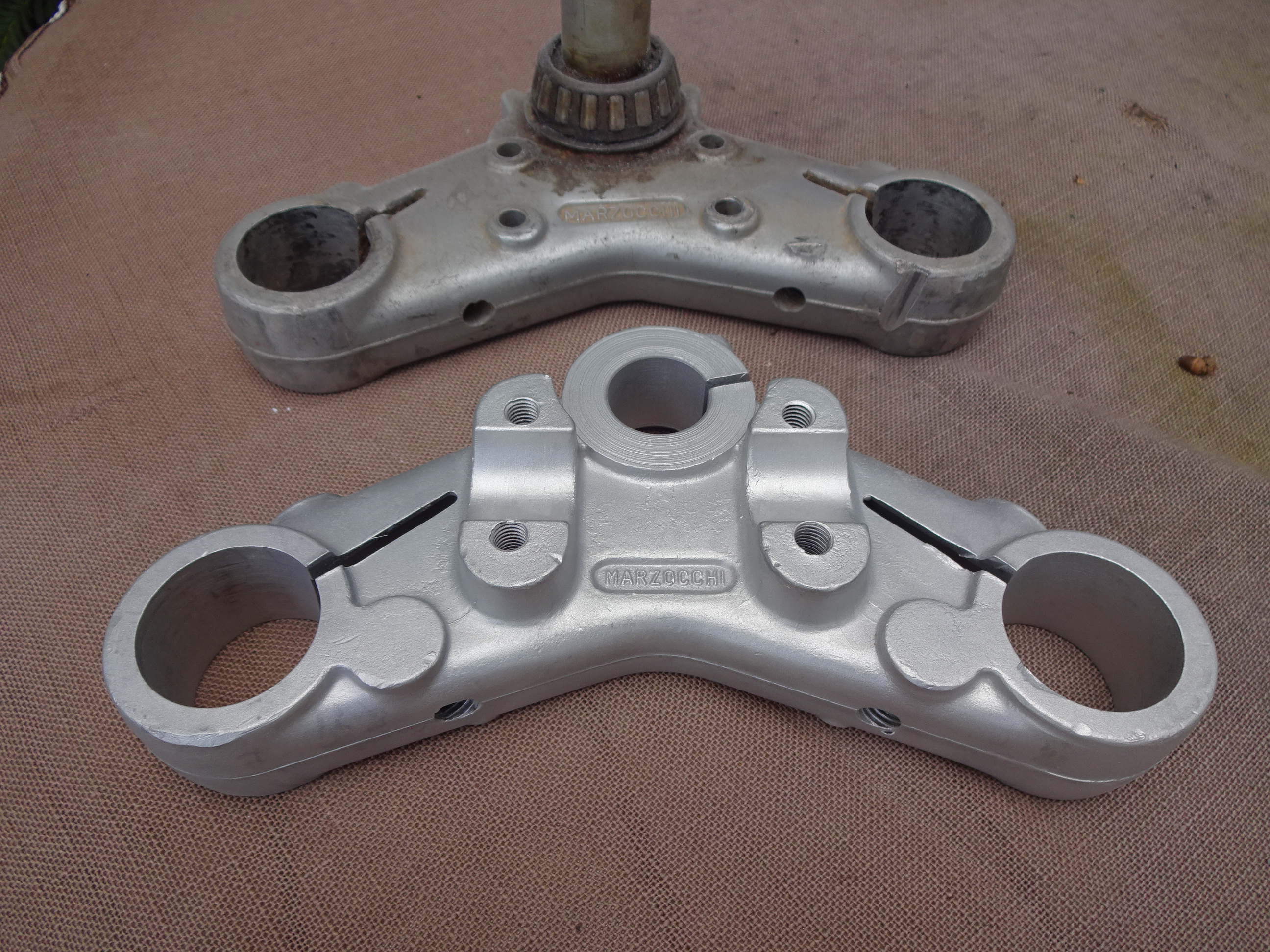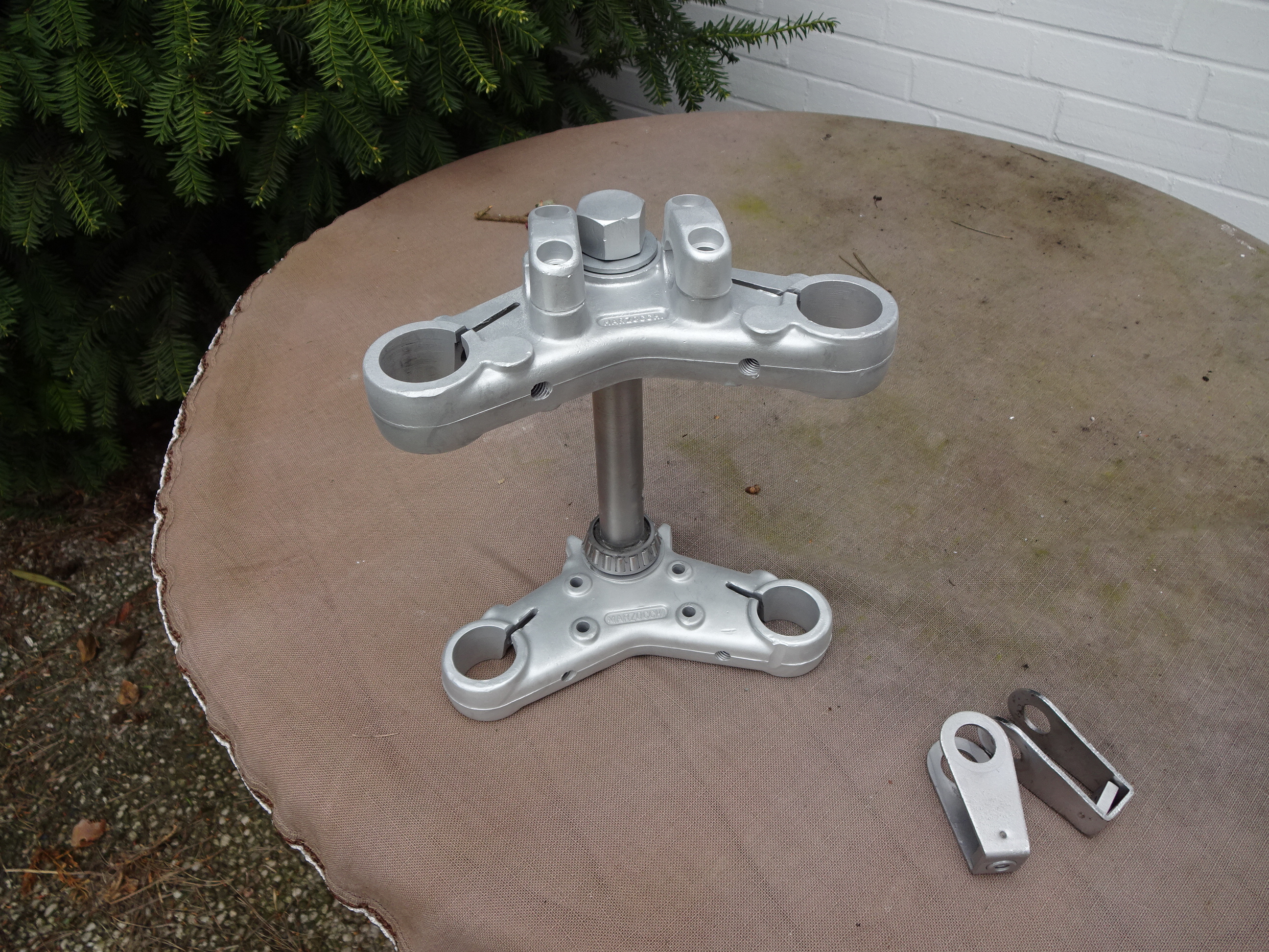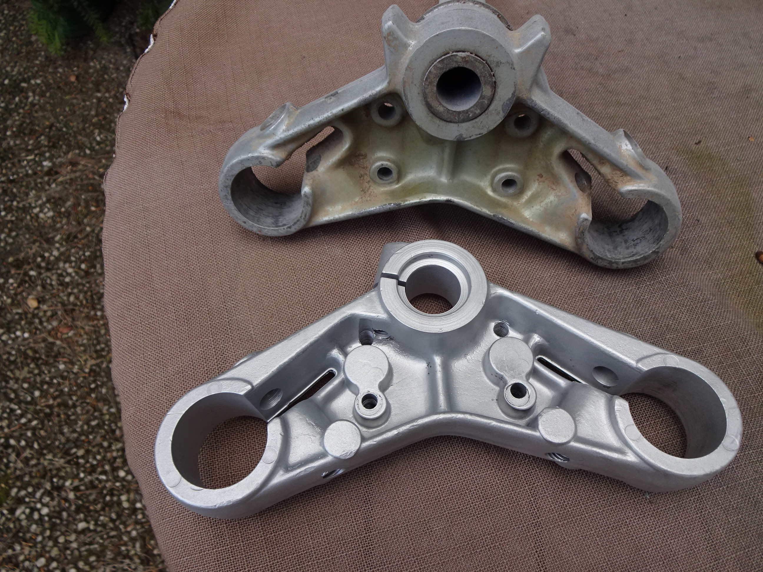 Die Gabelbrücken hab ich auch gleich mal Poliergestrahlt (die Körnung war halt auch grad in der Strahlkabine drin). Denke da mache ich nachher gar nichts, dass sieht recht gut aus.