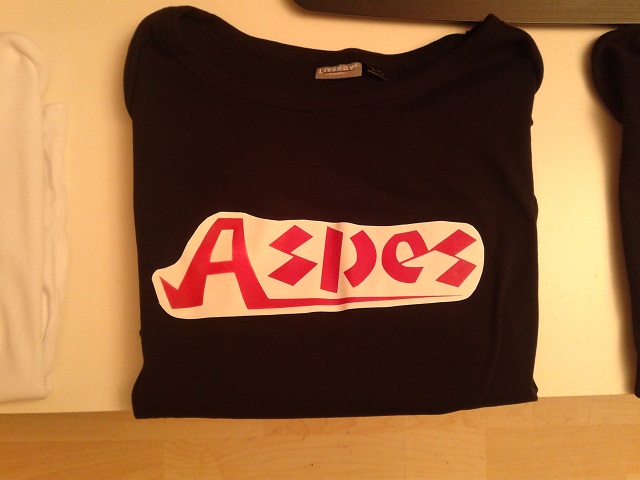 ich hab mal angefangen, einige T-Shirts und Kapuzenjacken mit verschiedenen ASPES Schriftzügen selber zu bedrucken, im Handel und im Internet bekommt man ja nichts mehr (zu vernünftigen Preisen). Ich muss aber erst noch testen, wie die Sachen nach der ersten Wäsche aussehen, Ich gebe Euch Bescheid. Bei Interesse, einfach kurze Nachricht an mich.