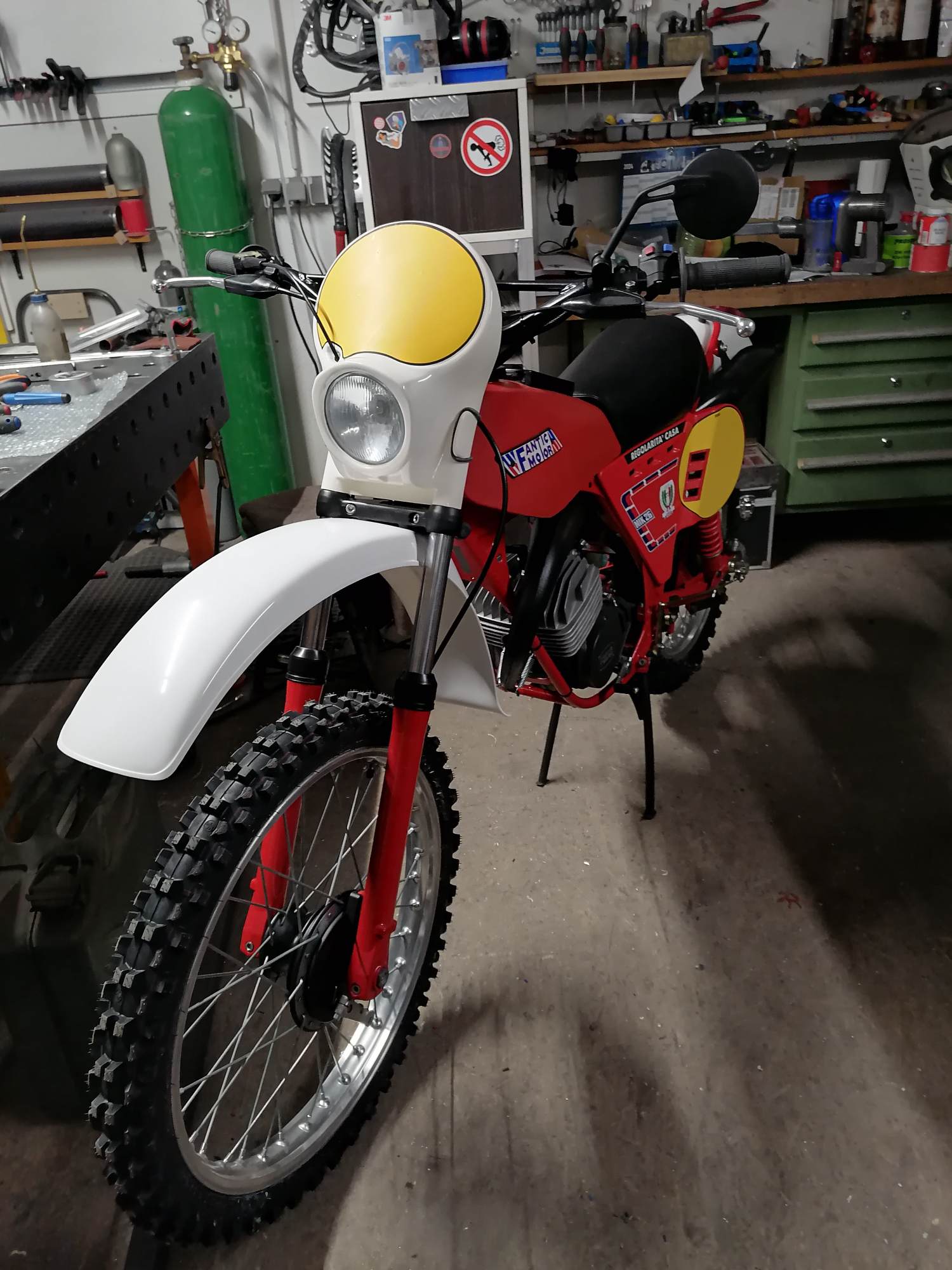 Ich hatte vorher den eckigen original Kotflügel dran und das sah noch katastrophaler aus.