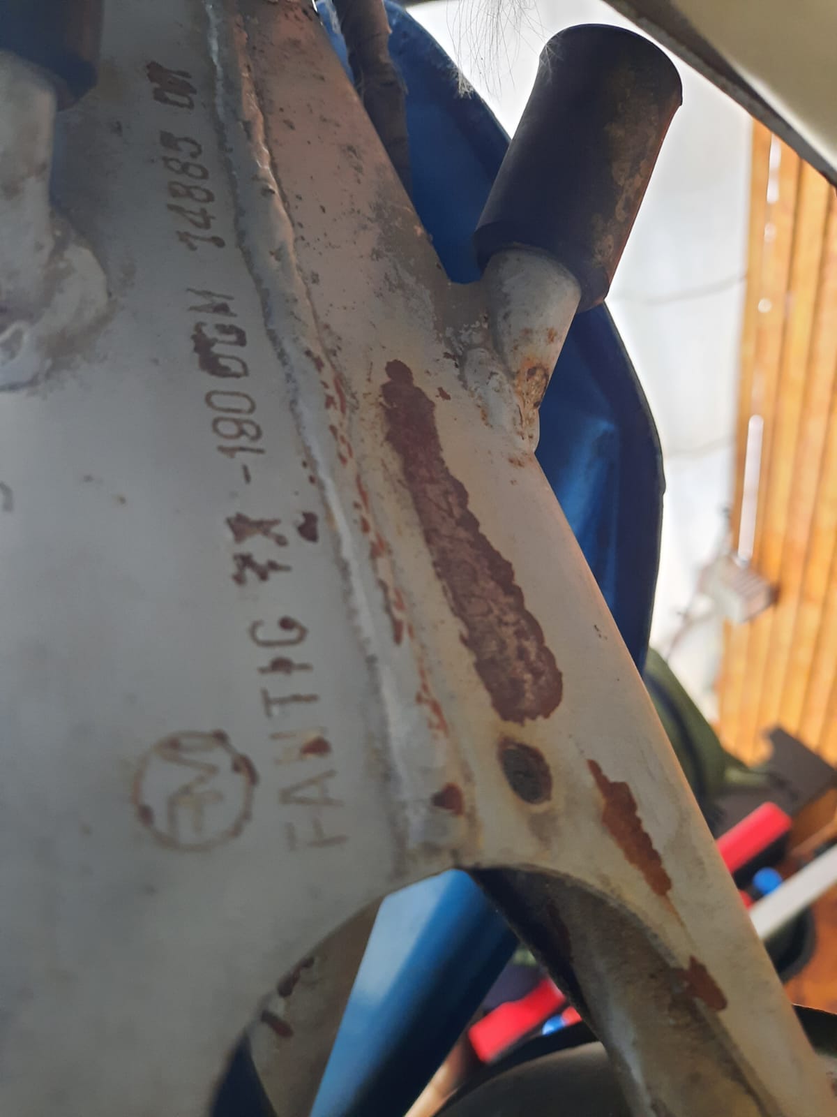 Die Ceriani Stoßdämpfer sind wohl auch nicht original. Was ich interessant find ist wie der Rahmen gekürzt wurde. Am Bild vielleicht nicht gut erkennbar, jedoch verjüngt er sich an der Schnittstelle und es sind Stopfen mit Dichtung eingedrückt.