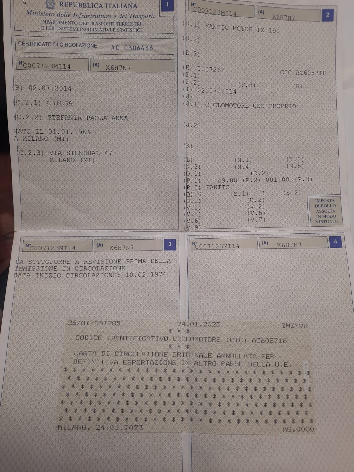 Da hast du eine TX 190, wie auf dem Rahmen zu erkennen. Baujahr müsstest du ja in den italienischen Papieren stehen haben. Sollte so 1976 sein,