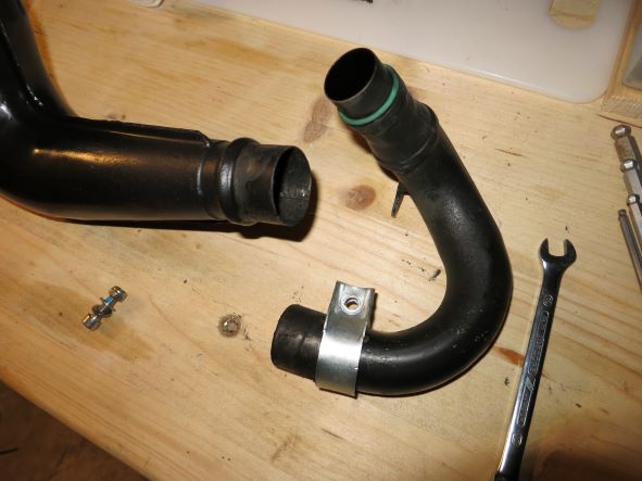 Hat jemand eine Idee, wie man den Krümmer / Expansionkammer an der Schelle abdichtet? Viton-O-Ring in die Aussparung einlegen?
