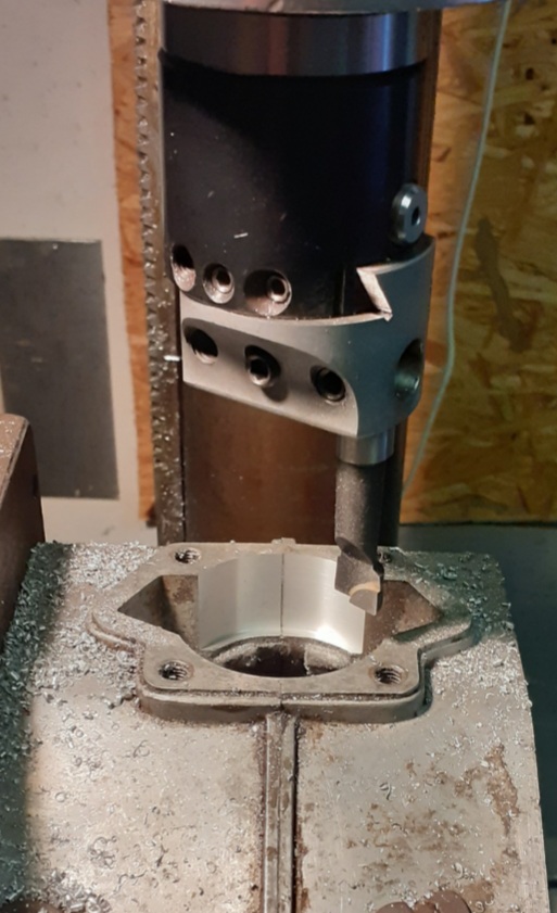 Mit der 39mm Welle hab ich eine gute Basis und kann immer noch was unterlegen bzw. den Auslass hochziehen. Der Auspuff steht ja auch noch nicht fest.