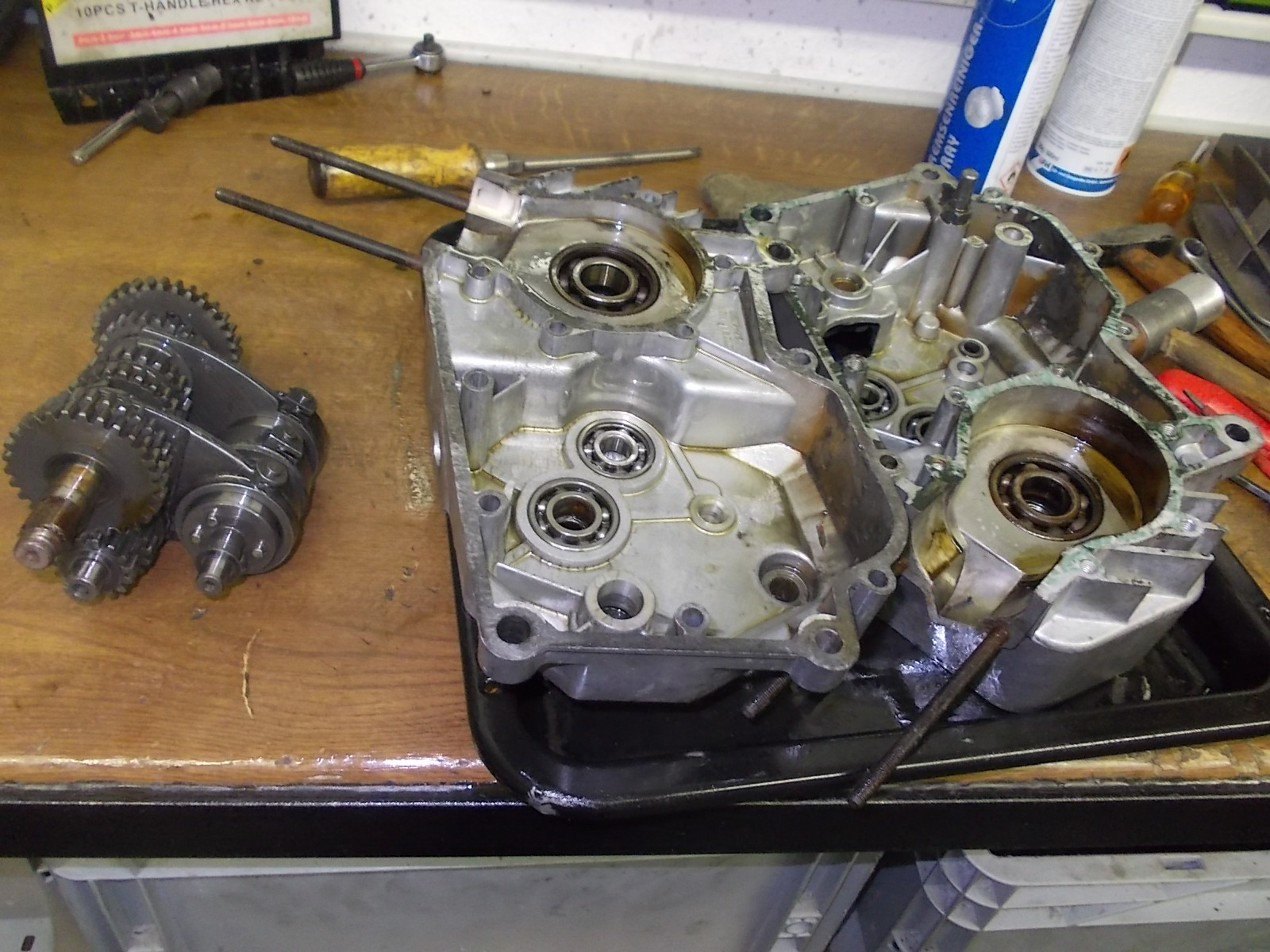 Alles zerlegt, jetzt geht es ans säubern, schweissen und strahlen. Dann beginnt das Neulagern und der Zusammenbau, Pleuelager kommt auch zur Sicherheit neu.