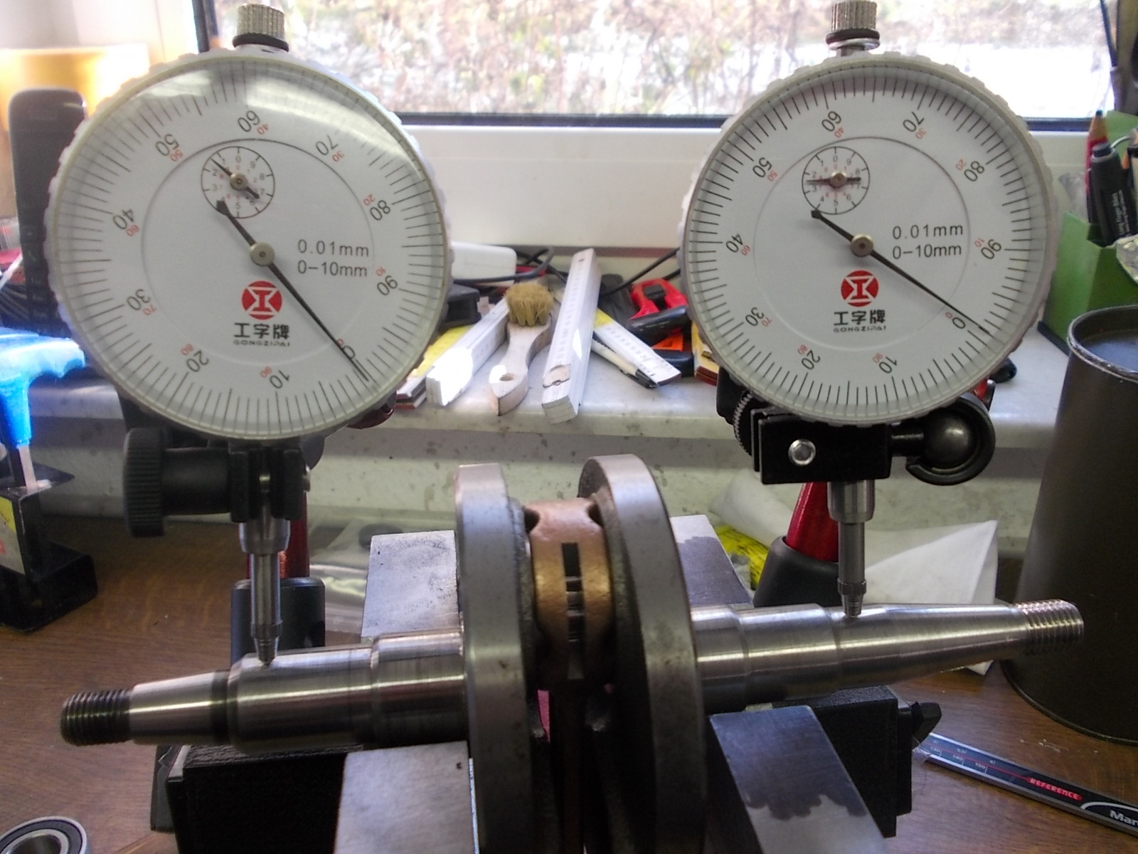 Während des Warten auf die heißen Gehäuse hab ich schon mal die Getriebewellen passend zu den Lagern geschliffen, die laufen jetzt sauber im Lager.