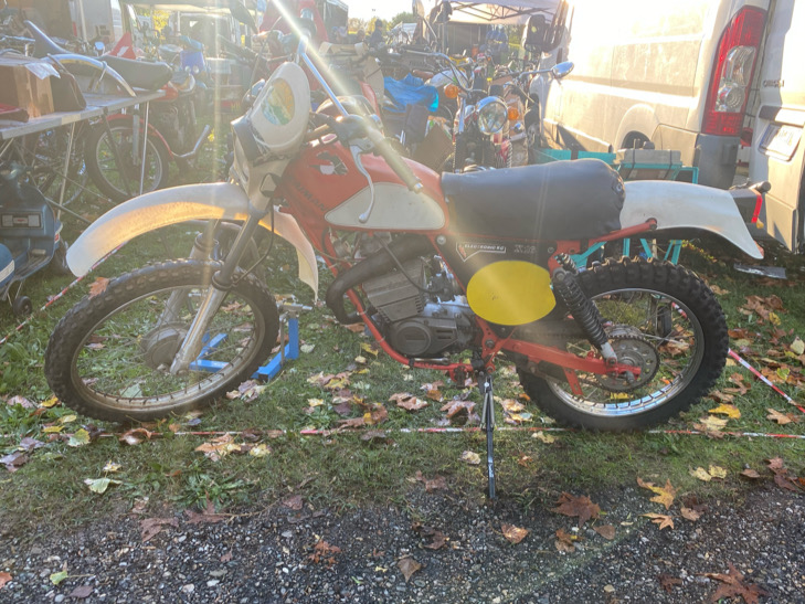 Bestandsaufnahme fiel nicht schlecht aus. Das schöne ist, alle wichtigen Teile sind dran, z.Bsp. Auspuff komplett, oder auch die Federbeine. Da dachte ich erst, die gehören da nicht dran, weil die so nach Trial aussehen. Im Prospekt verglichen, passt das aber.