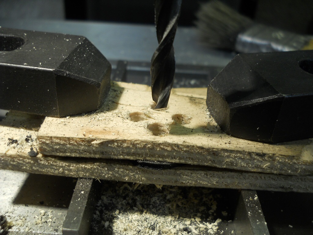 ) zwischen zwei Holzbrettchen geklemmt. So zum Rand das ich mit meiner Positionsanzeige die Lochkoordinaten promloslos anfahren konnte. Hier hätte man sich aber auch ne Schablone auf Papier machen und einfach aufkleben können.
