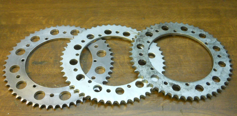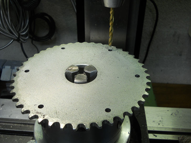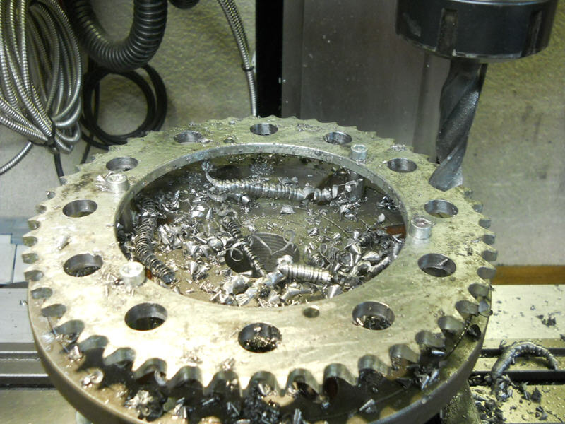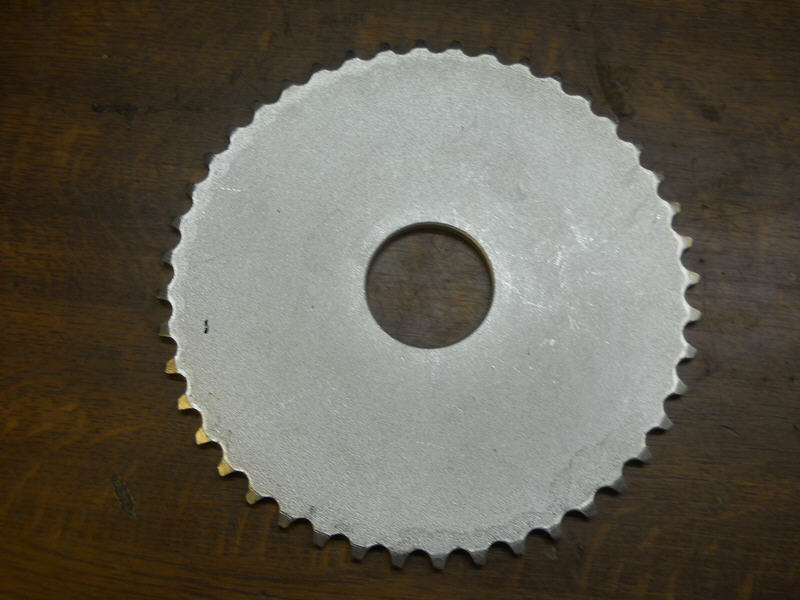 Hierbei handelt es sich jedoch nur um ein Kettenblatt mit 44 Zähnen. Bei den größeren Zähnezahlen müssen jetzt noch optische Zusatzbohrungen gemacht werden. Hier hat man das bei einem alten Kettenblattrohling (noch) nicht gemacht.