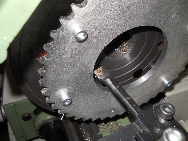 Jetzt musste ja die kleine Innenbohrung passend für die Kettenblattaufnahme vergrößert werden.