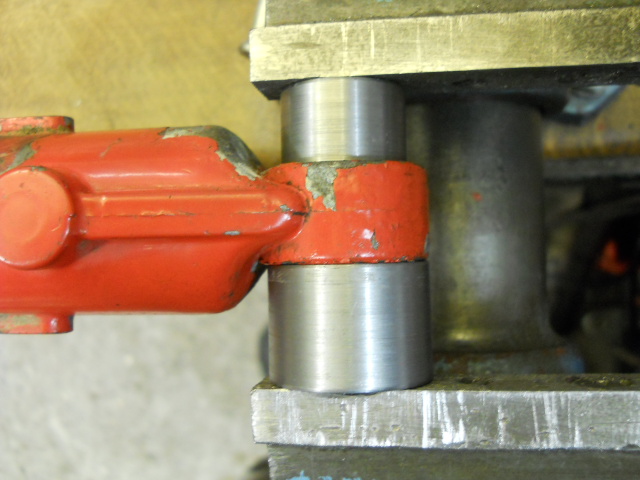 Angefangen habe ich damit mir was zu bauen um die Buchsen aus den Federbeinaugen zu bekommen, Gleich mal so aufgebaut, das ich mit unterschiedlich dicken Büchsen die unterschiedlichen Bohrungen der Federbeinbuchsen auspressen kann.
