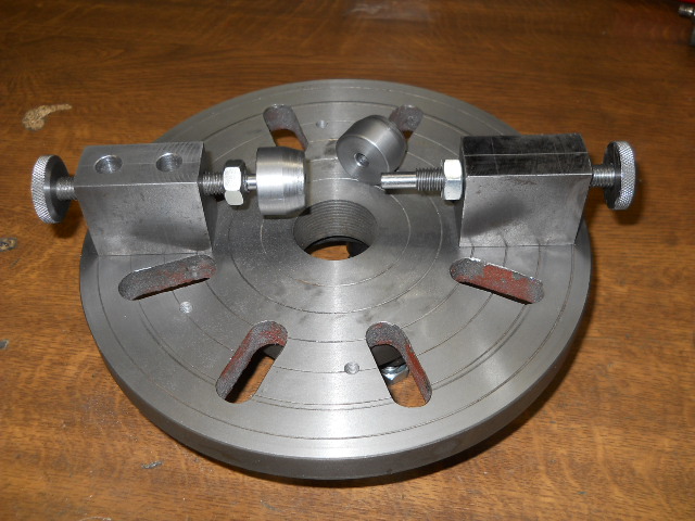 Trotzdem hab ich Bitubos die sich weiterhin weigern ihren Deckel herzugeben (sieht man auf den vorherigen Bildern, da ist noch ein verbogener Stahlstift zu sehen). Da hab ich mir eine Vorrichtung für die Planscheibe meiner Drehbank ausgedacht, wo ich die Federbeinaugen in einstellbaren Kegeln spannen kann. Geführt wird das Federbein dann noch von einer feststehenden Lünette.