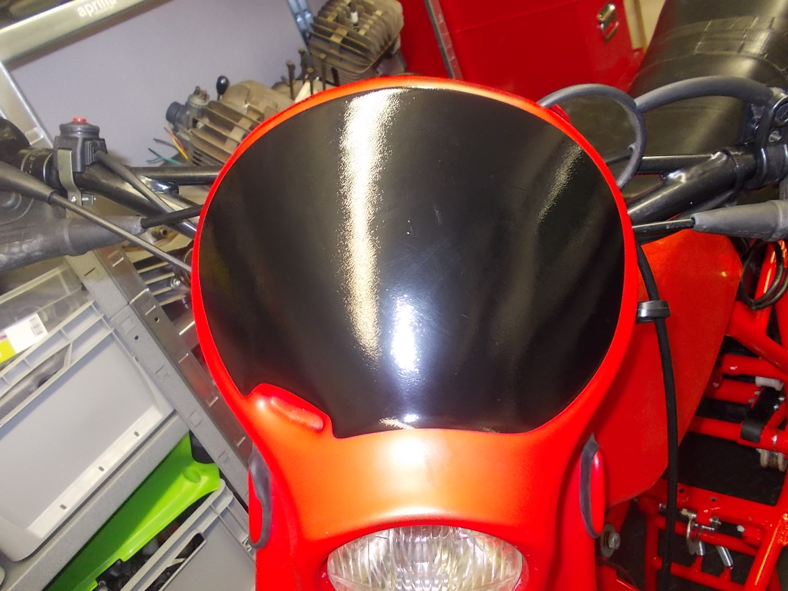 Aufgeklebt und positioniert gibt es noch Blasen (unten rechts). Die streiche ich mit nem Handtuch mit und mit raus über nen Zeitraum von 20min.