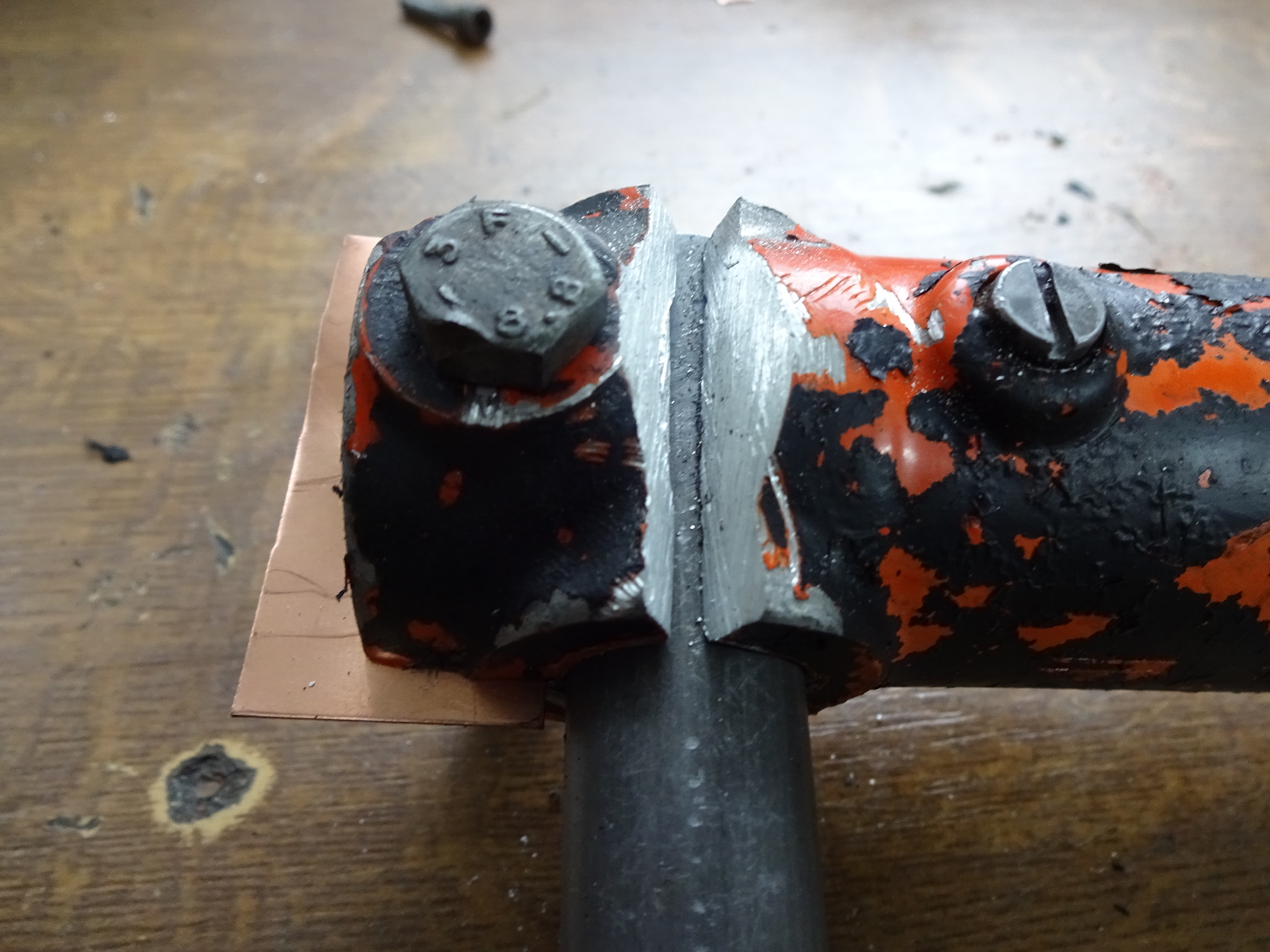 Also Gabeln vorbereitet! Musste aber später die orange Alugabel noch mal die Kerbe flacher schleifen. Ich kam sonst nicht sauber in den Nahtgrund und das wurde so nämlich nivhts.