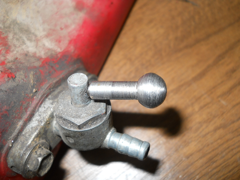 Ach da ist doch der Benzinhahn der Hopi, da ist doch der Hebel weg. Also einfach ein Stück aus der Restekiste geholt und quick and dirty ein M4 Gewinde drauf, sowie ne Kugel am anderen Ende vorgedreht. Den Rest mit der Feile zur Kugel gemacht und schon geht der Benzinhahn wieder.