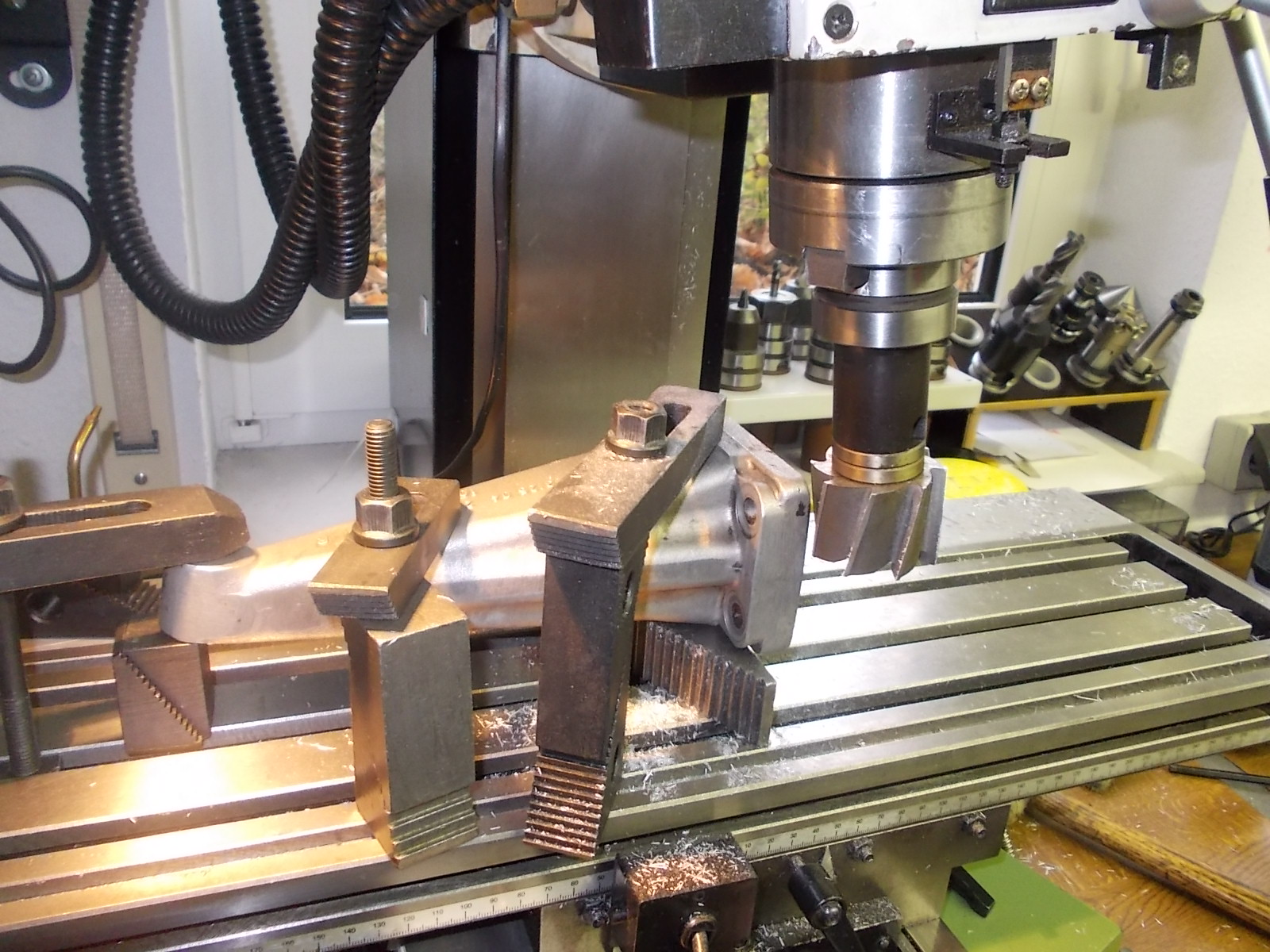 - es müssen jetzt noch die Bohrungen am Flansch aufgefeilt werden, wegen dem jetzt anderen Winkel.