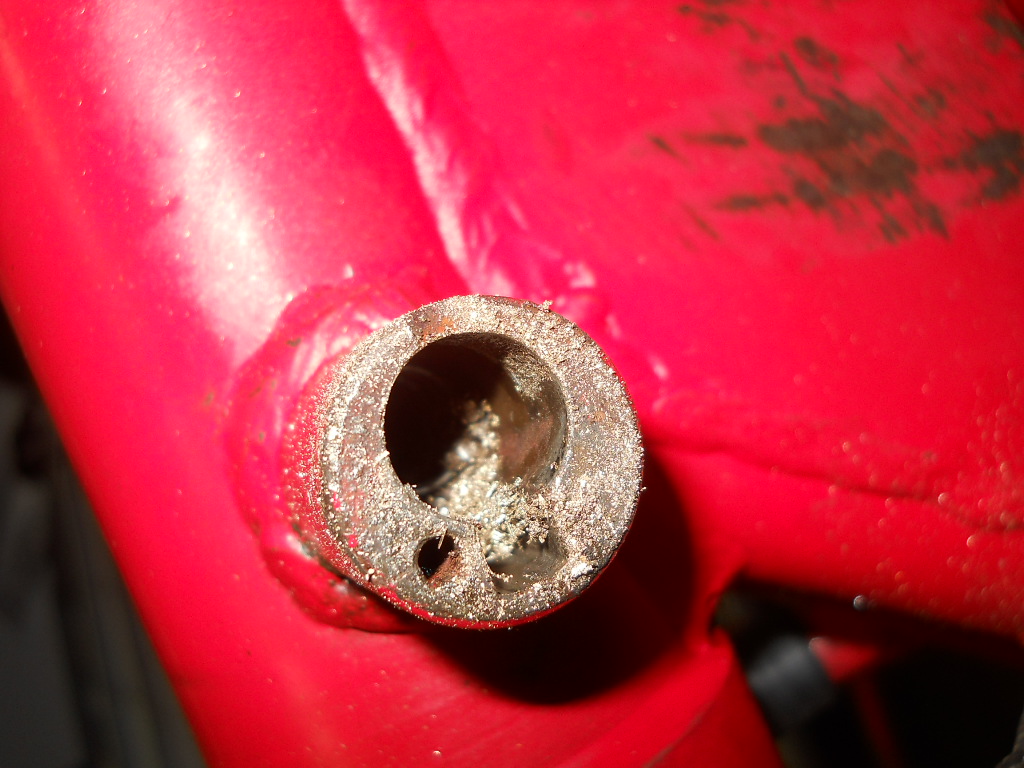 . Klar war die dünne Buchse drückt sich im 1/10tel Bereich durch das Reinklopfen zusammen, muss also wieder aufgebohrt werden. Besser wäre es dies dannn mit ner Reibahle zu machen, hatte aber keine passende. Also passenden Bohrer nehmen, hab ja diese im 0,1mm Abstufung von 1 bis 13mm. Nur bohrt eben ein 11,7mm Bohrer kein 11,7mm Loch sondern größer, speziell beim Freihandbohren mit der Handbohrmaschine. So hatte ich nachher dann ein 11.9mm Loch und der Hebel wackelte unnötig in der Buchse. War jetzt nicht so viel das man es neu machen musste, aber nicht wirklich toll. Dadurch gefrustet, waren die Gedanken nicht mehr ganz bei der Sache und es ging los.