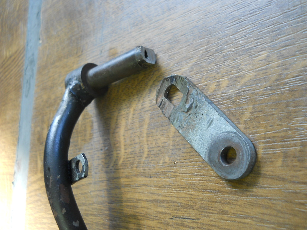 Der Bremshebel stand in Fahrtrichtung gesehen zu weit nach innen, also heiss machen und rausbiegen/kloppen. Dabei bog sich dann aber nicht der Hebel wie geplant, sondern der Bolzen an Hebel. Gut denke ich mir, setz unten am Hebel noch ne Schweissnaht und dreh bzw. Fräs die nachher passend. Dummerweise hatte ich keine so langen passenden Fräser mehr und überhaupt bekam ich keine zentrische Einspannung für das schon teilvermurkste Teil.