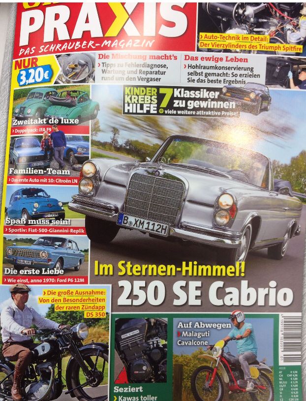 Den Redakteur Robert kenne ich aber bereits von Veröffentlichungen in der Sparkassen Zeitung, dabei ging es aber um meinen Alfa Romeo. So sind wir beim Plausch auch auf die kleinen Mopeds gekommen, hat sich so ergeben. Der Chefredakteur der Oldtimer Praxis entscheidet letztlich was veröffentlicht wird, der hat natürlich das gesamte Oldtimer Spektrum inklusive bzw. vor allem der Autos im Auge (und nicht nur durchgeknallte Spinner wie uns