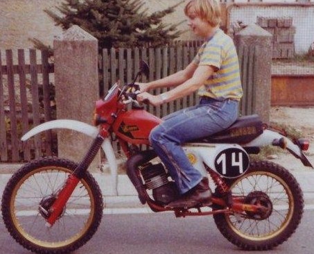 Mit der Maschine begann eine neue Ära, meine erste Geländemaschine! Schnell wurde sich im Sommer 1983 an der ehem. Crossbahn in Ingelheim (auf dem Gelände des jetzigen Schlemmerhauses) fast jeden Tag getroffen. Das machte so die Runde, dass jeden Tag mehr Jugendliche dazu kamen. Zur besten Zeit waren wir zwischen 20 und 30 Jugendliche. Es wurden Rennen gefahren, Horrorgeschichten am Lagerfeuer erzählt, und die ersten Paare sind zusammen "gegangen" wie man das damals genannt hatte. Was noch lustig war; wir hatten den Schnellstart trainiert, und wenn jemand "die Bullen" gerufen hat, waren wir binnen 10 sek.verschwunden. Die Zeit hatte mich sehr geprägt, und ist seit dem Berufsleben verloren gegangen.
