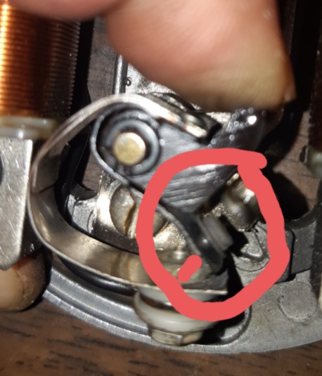 Der eine Kontakt ist lose, man sieht das Spiel auf dem Bild, und wackelt locker 1mm. Ist mir unverständlich wie die Fantic damit überhaupt noch gelaufen ist, aber ich nehme das mal so hin :-). Habe gerade eine kontaktlose von Ducati verbaut, bin aber noch nicht fertig.